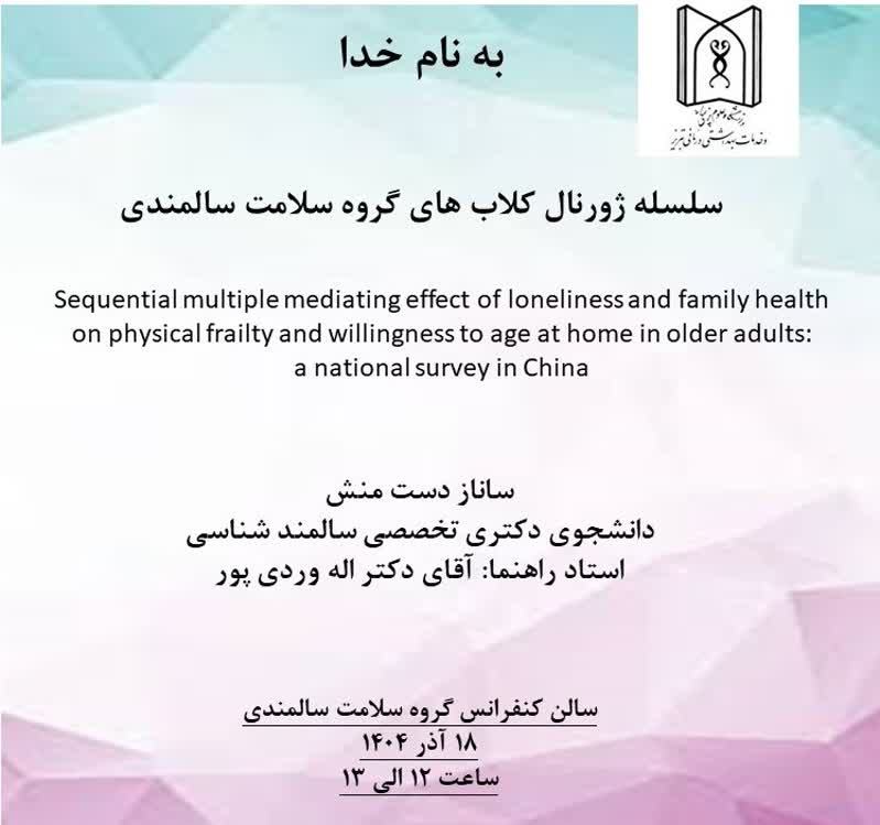 جلسه ژورنال کلاب خانم ساناز دست منش دانشجوی دکتری تخصصی سالمند شناسی