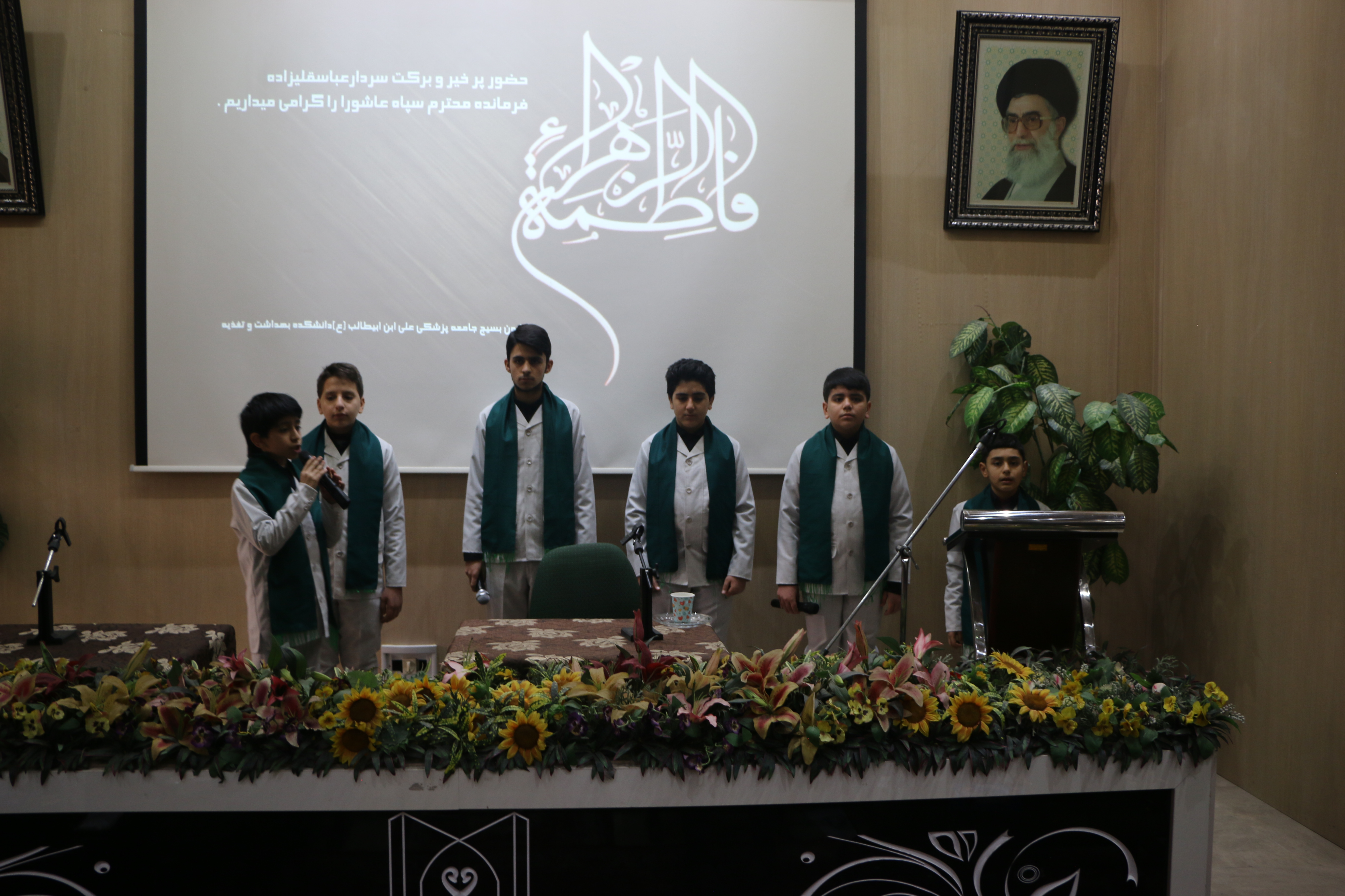 مراسم بزرگداشت روز شهادت حضرت صدیقه کبری ام ابیها و بزرگداشت سال گشت شهادت فرزند معنوی ایشان سردار دلها سه شنبه مورخه 14/10/1400 در آمفی تاتر دانشکده بهداشت دانشگاه تبریز علوم پزشکی تبریز با ذکر صلوات بر محمد آل محمد و قرائت آیاتی چند از کلام الله مجید و اجرای سرود ملی راس ساعت 13 آغاز گردید.