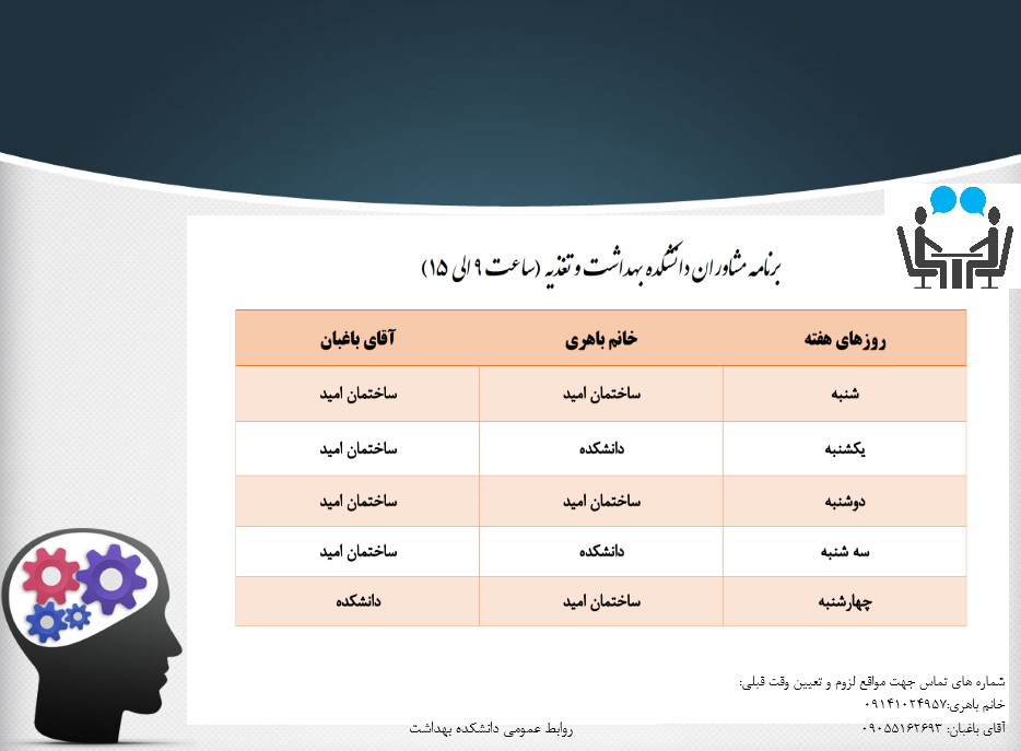 برنامه مشاوران برنامه مشاوران طبقه سوم روبروی سایت کامپیوتری کد خبر : 46158 کپی کلمات کلیدی : دانشکده بهداشت تبریز روابط عمومی دانشکده مشاوران واحد
