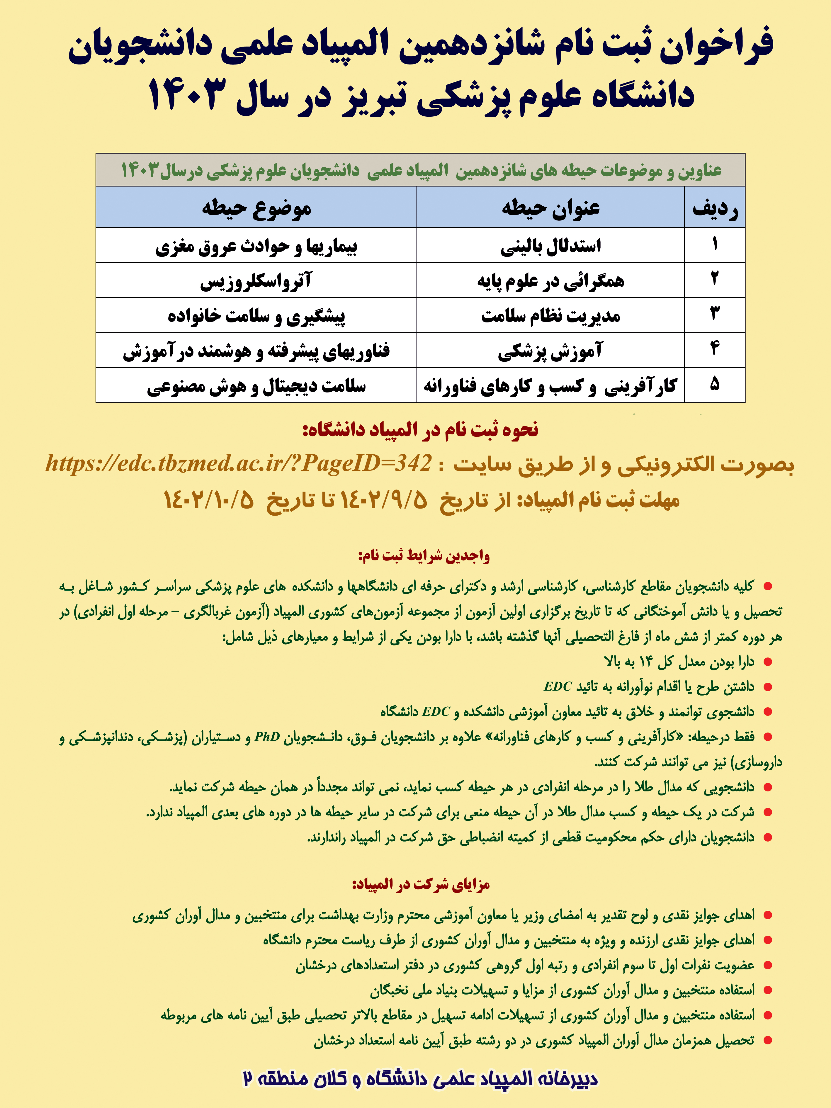 فراخوان ثبت نام شانزدهمین المپیاد علمی دانشجویان دانشگاه . کد خبر : 46209 کپی کلمات کلیدی : المپیاد علمی آموزش پزشکی کارآفرینی دانشگاهی
