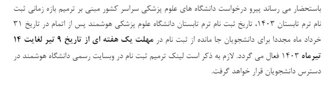 ترمیم ثبت نام ترم تابستان 1403-هوشمند . کد خبر : 46279 کپی کلمات کلیدی : دانشگاه علوم پزشکی تبریز دانشکده بهداشت تبریز علوم پزشکی هوشمند
