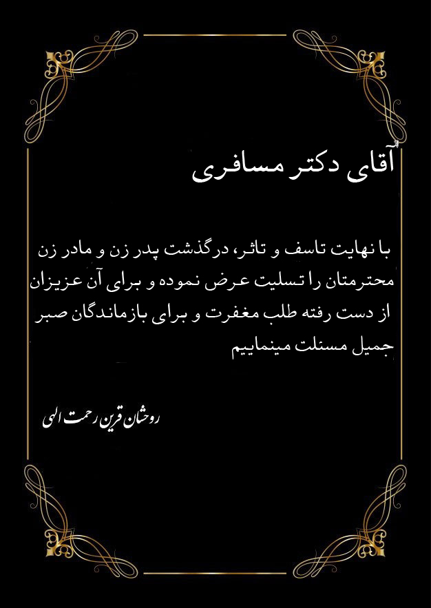 تسلیت درگذشت پدر و مادر همسر گرامی همکار محترم دانشکده آقای دکتر مسافری