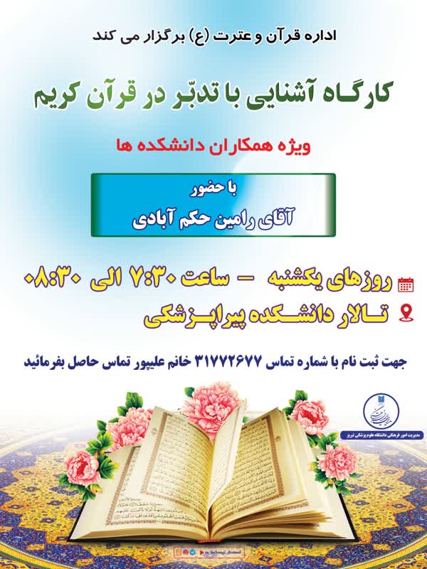 کارگاه آشنایی با تدبر در قرآن کریم . کد خبر : 46290 کپی کلمات کلیدی : دانشگاه علوم پزشکی تبریز دانشکده بهداشت تبریز قرآن کریم