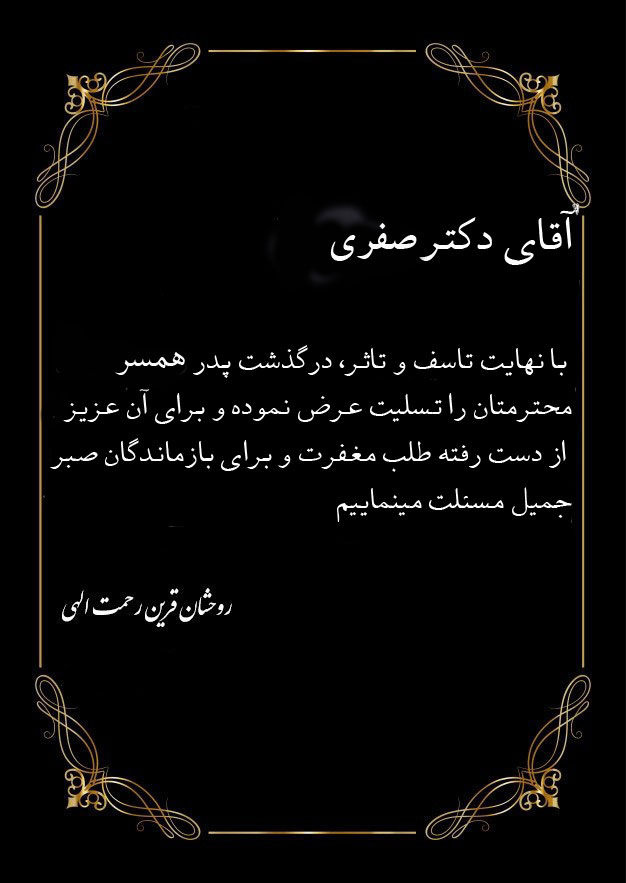 تسلیت درگذشت پدر همسر گرامی همکار محترم دانشکده آقای دکتر صفری روحشان شاد و یادشان گرامی باد کد خبر : 46293 کپی کلمات کلیدی : دانشکده بهداشت تبریز تسلیت دکتر صفری
